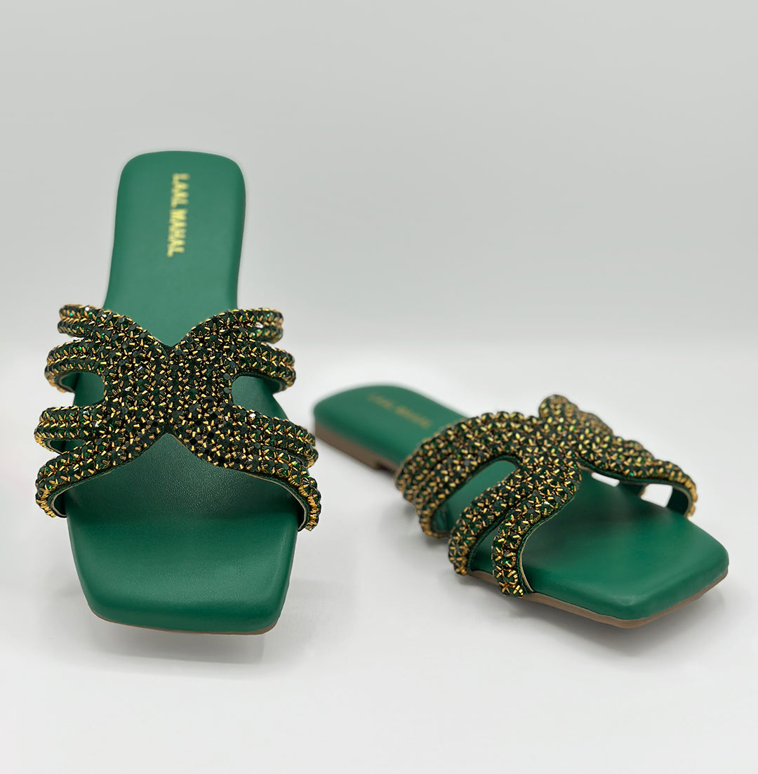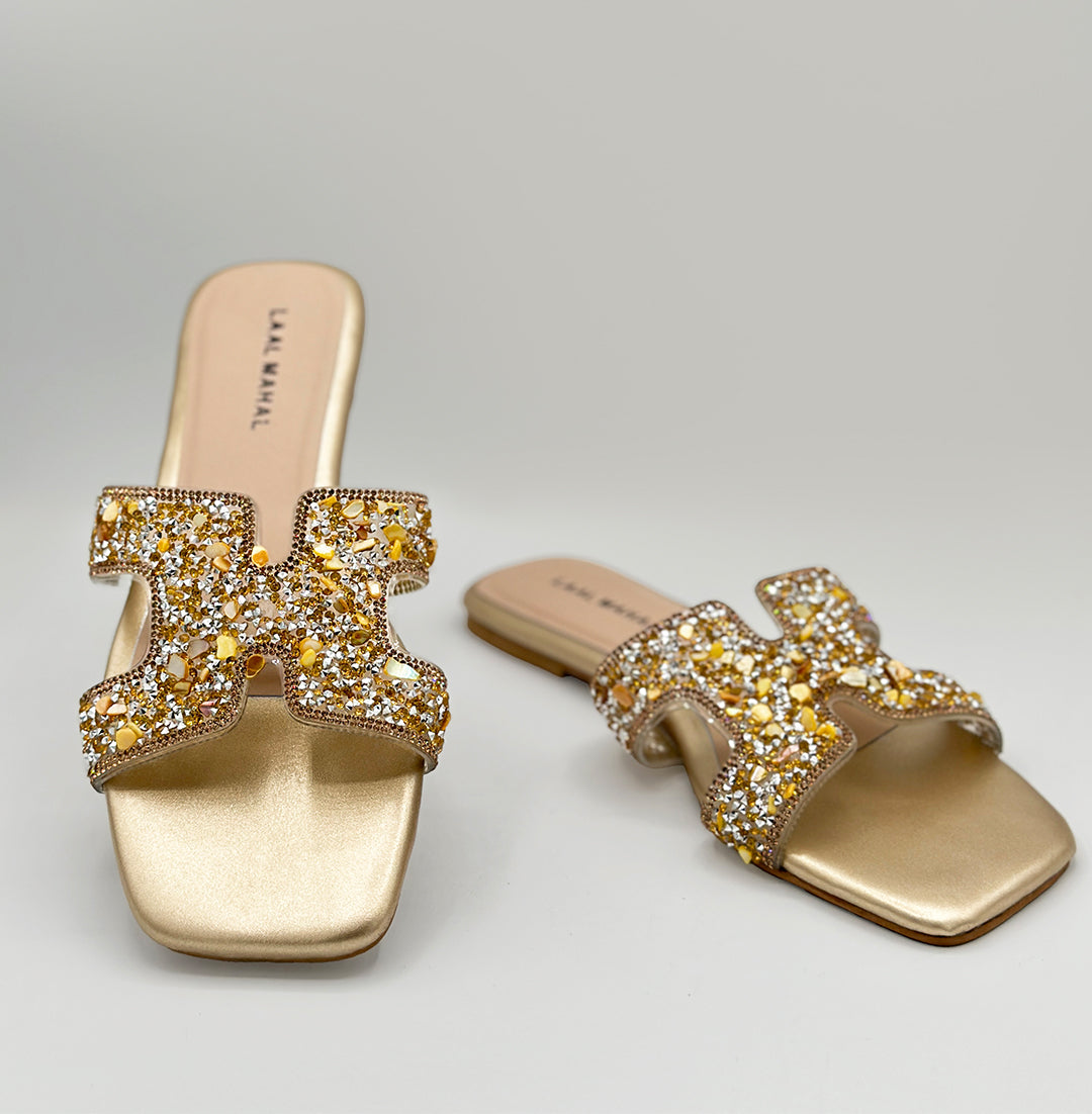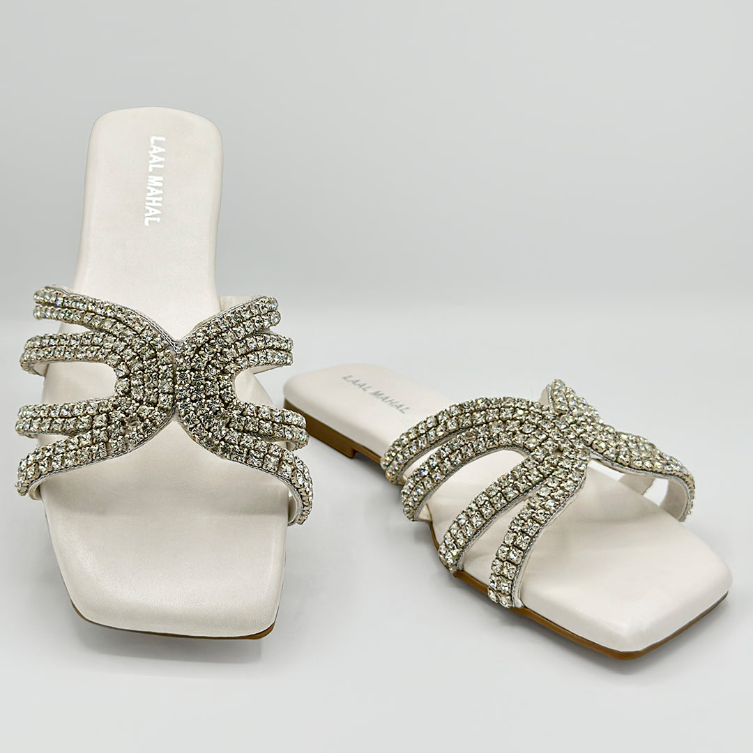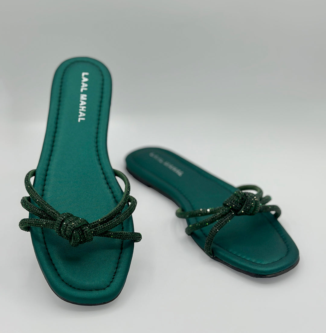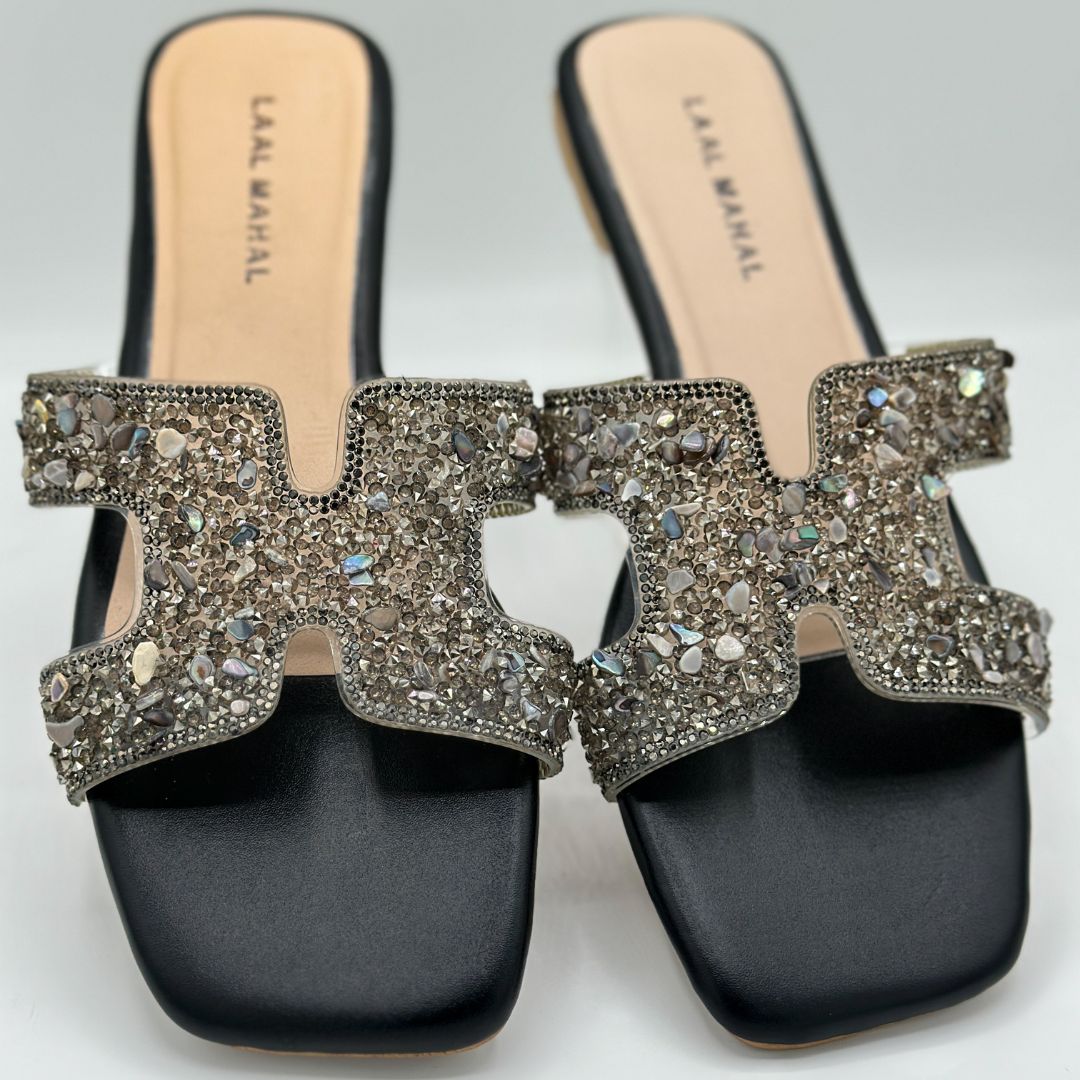 Material: Premium rexine with glittery mesh rope Design: Open toe with knotted upper strap Sole: Non-slip...