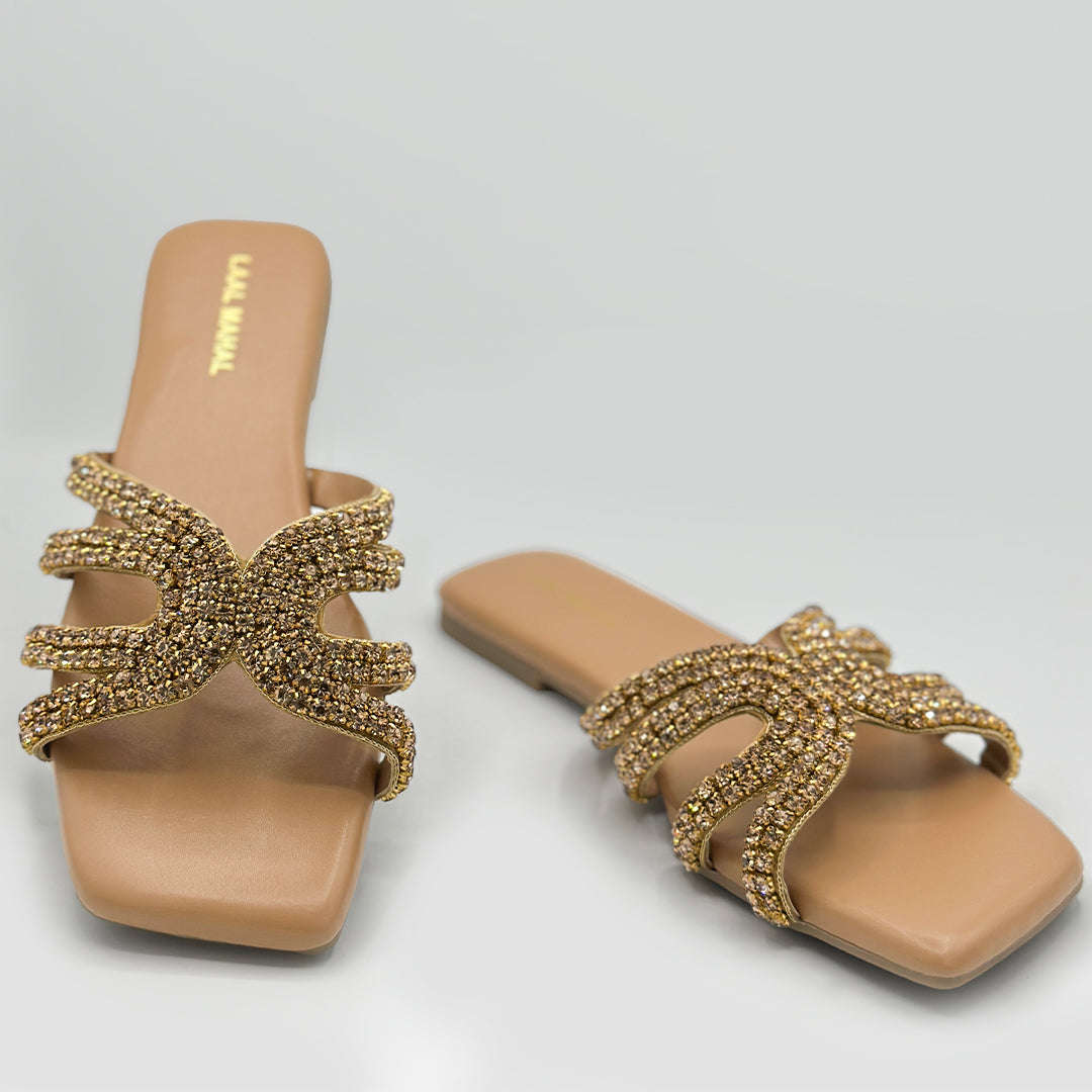 Upper: Light gold-tone ballet adorned with elegant studs Cushioned Comfort: Soft inner lining and padded insoles...