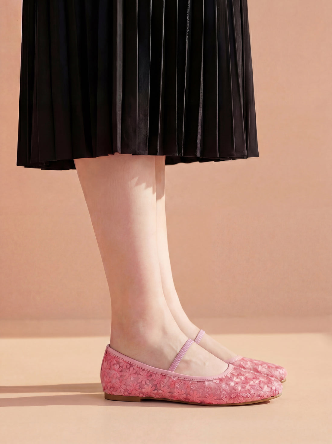 These pink Mary Jane flats feature delicate floral embroidery that adds a touch of charm...