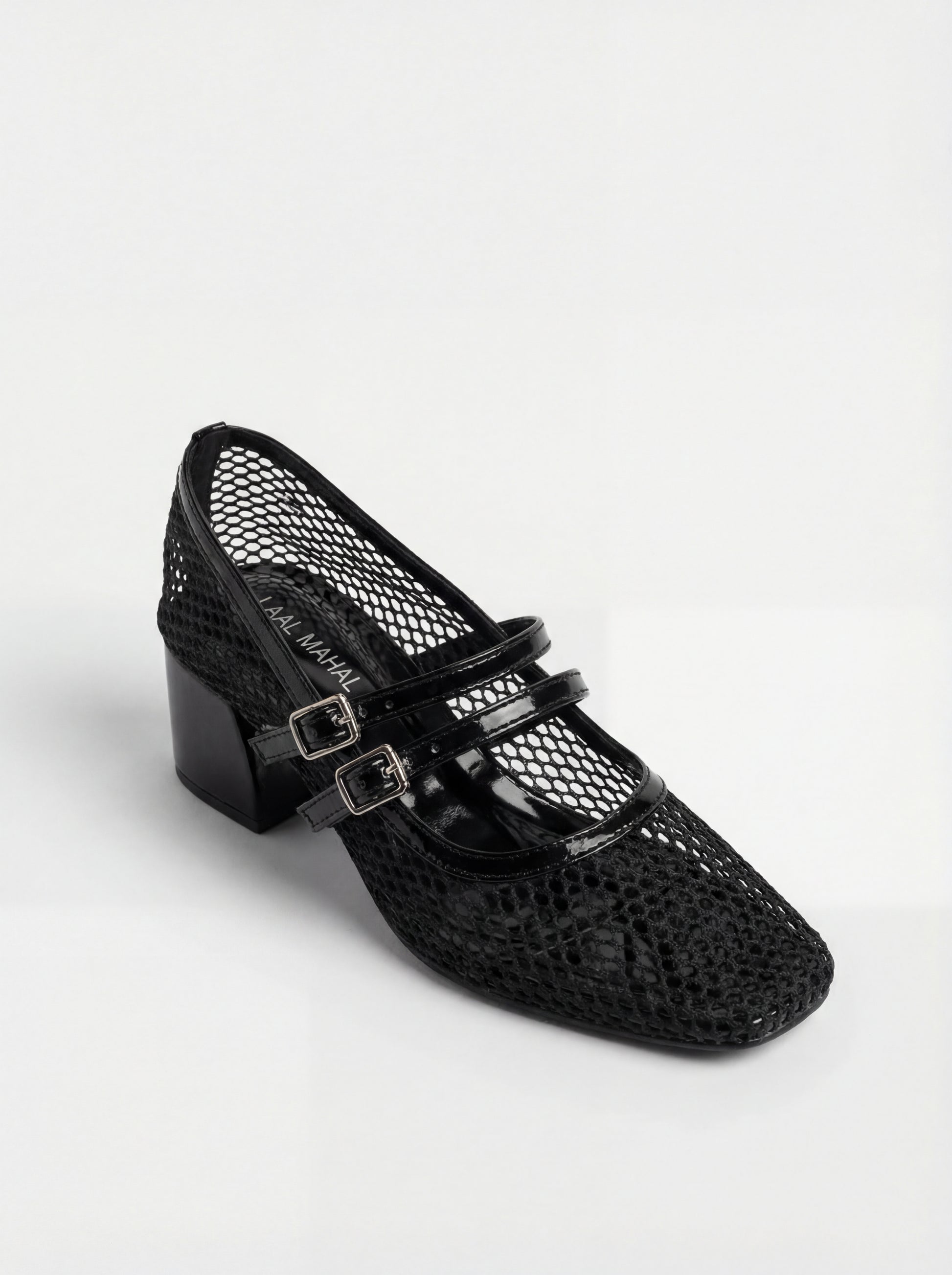 Black Mesh Block Heels
