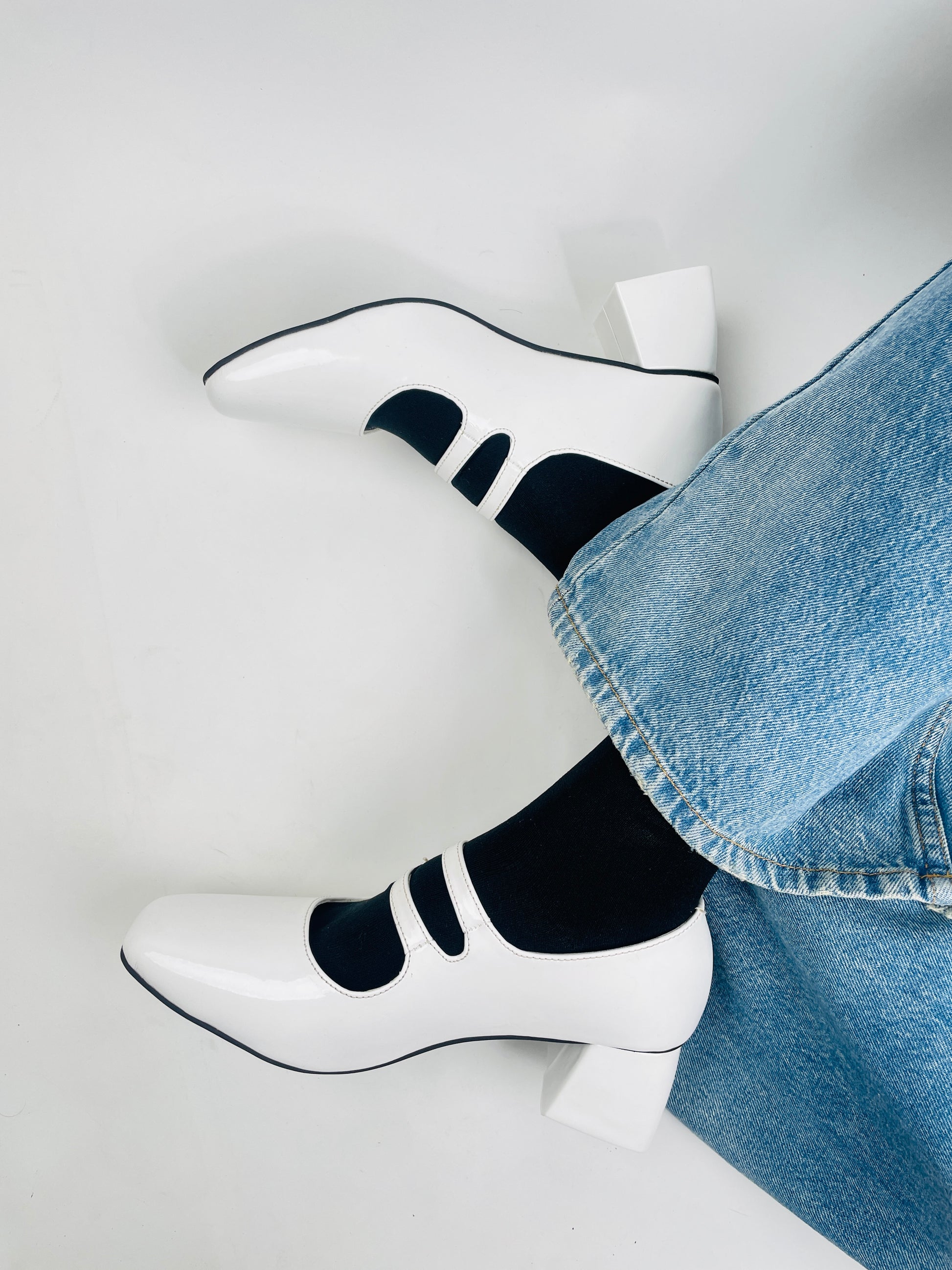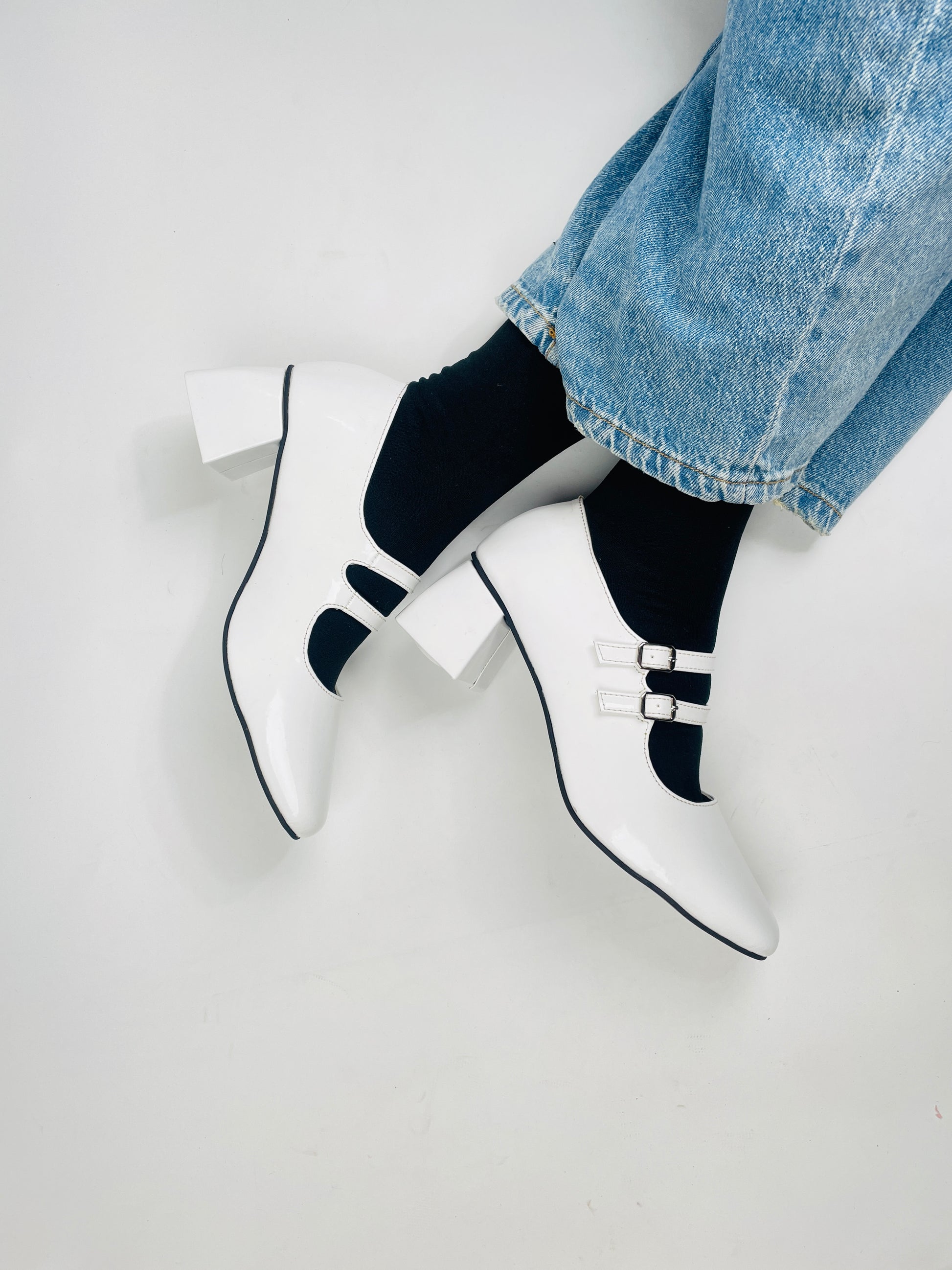 White Mary Janes Heels