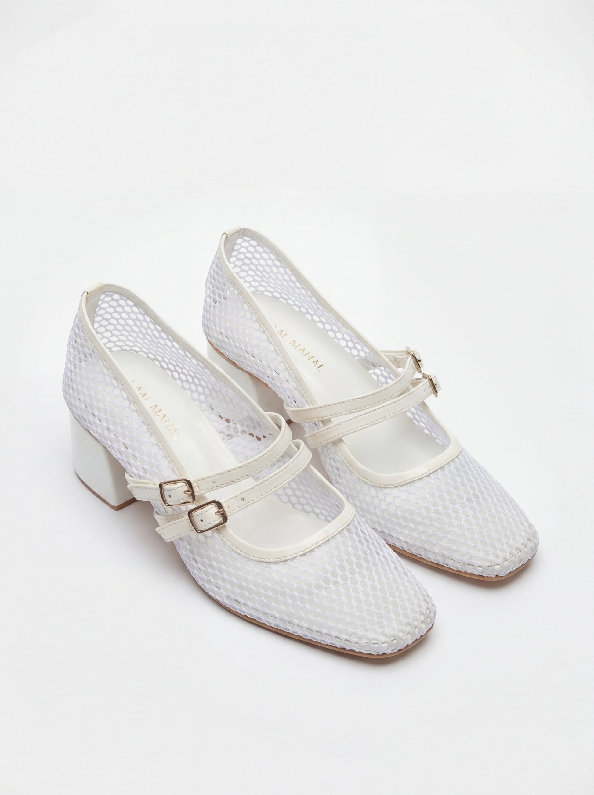 White Mesh Block Heels